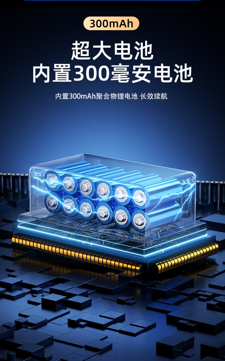9.300mAh stort batteri med indbygget 300mAh batteri og 500mAh polymer lithium batteri for langvarig udholdenhed