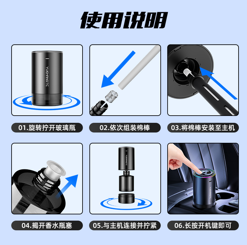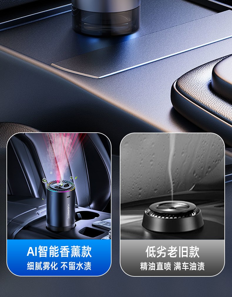7. Intelligent sensing AI intelligent chip registrerer automatisk den ultralyds intelligente chip i bilmiljøet og forstøver æteriske olier på nanoskala med en vibration på 2 millioner hertz pr.